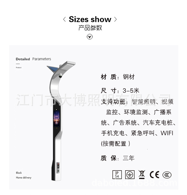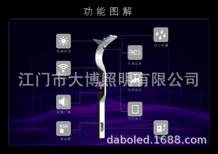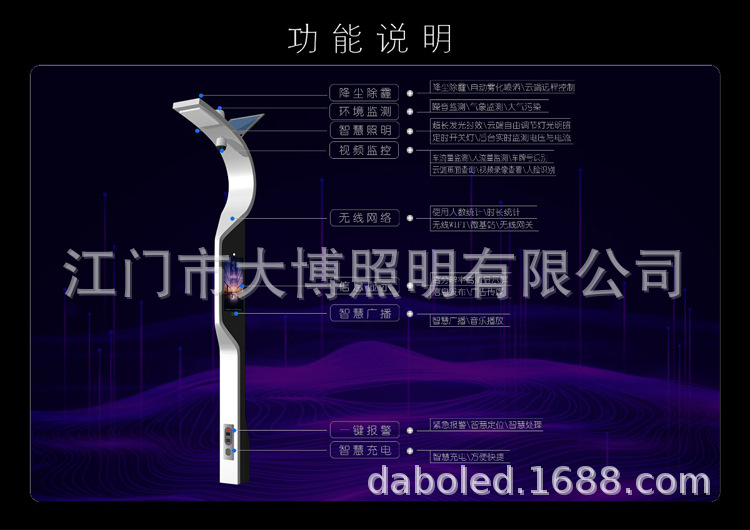 現代特色多功能一體化智慧路燈 充電樁監控WIFI小區公園智能路燈