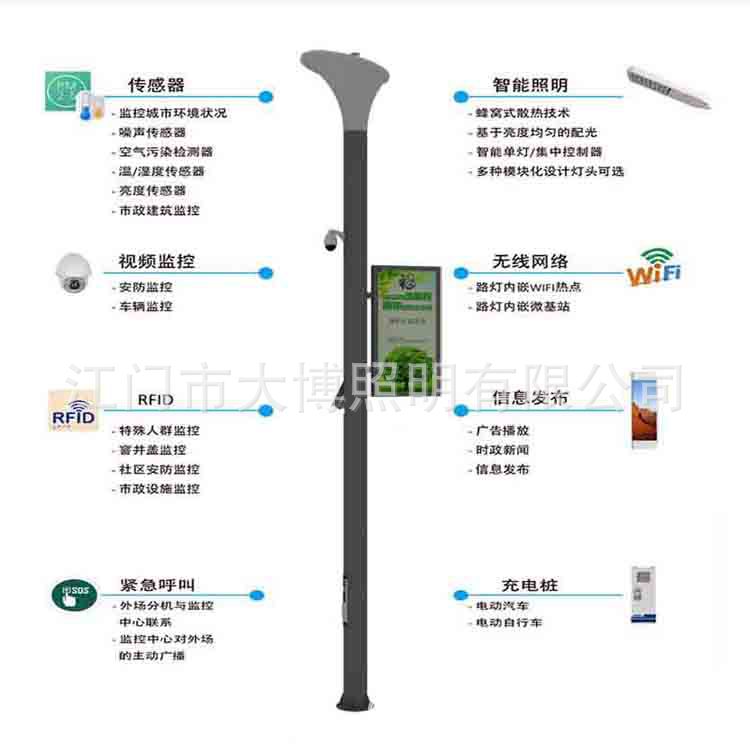 新款智能庭院燈 LED照明投影儀充電樁廣告屏環境監控WIFI智慧路燈
